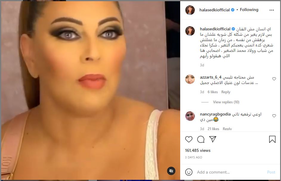 كانت هالة صدقي، فاجئت جمهورها بلوك جديد من خلال تغيير تسريحة شعرها، وشاركت جمهورها مقطع فيديو عبر حسابها الخاص بموقع انستجرام، أطلت فيه بإطلالتها الجديدة، مؤكدة على ضرورة أن يغير الإنسان من مظهره من حين لآخر حتى لا يشعر بالملل.