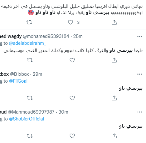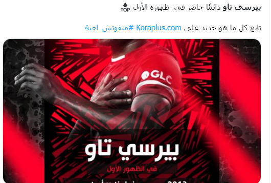 تصدر وسم بيرسي تاو لاعب النادي الأهلي، موقع التغريدات القصيرة تويتر، وذلك بعدما أحرز الهدف الثاني والثالث في مباراة أمس بشباك النادي الإسماعيلي، وذلك في المباراة التي أقيمت على ملعب برج العرب.