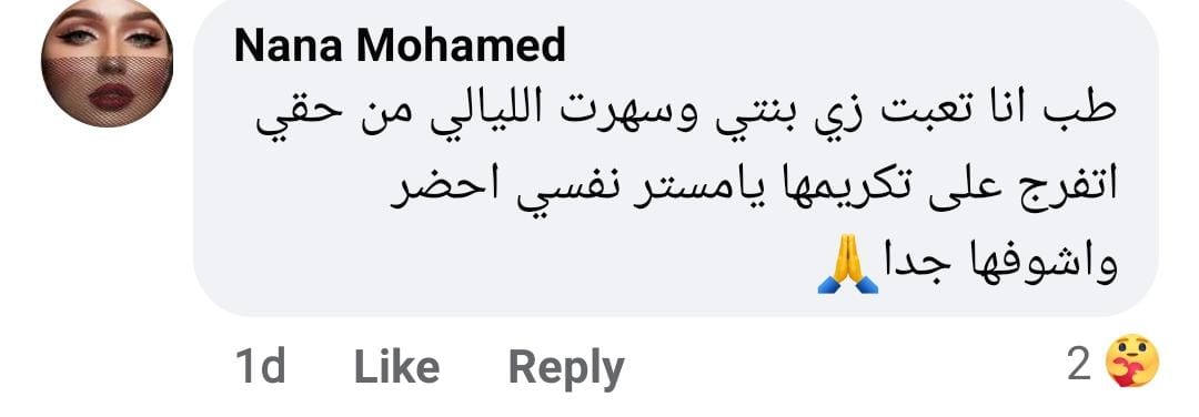 وقالت ياسمين عبد السلام، هو أنا ينفع أجي أحضر من غير ما أتكرم عادي، بينما مزحت أخرى في تعليقها قائلة: يا مستر كده الحفلة لازم تكون في الاستاد.