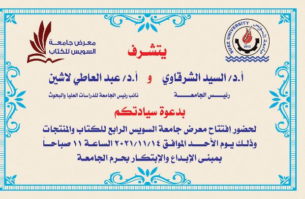 يأتي ذلك تحت رعاية الدكتور السيد الشرقاوي، رئيس جامعة السويس، وإشراف الدكتور عبد العاطي لاشين نائب رئيس الجامعة للدراسات العليا والبحوث.