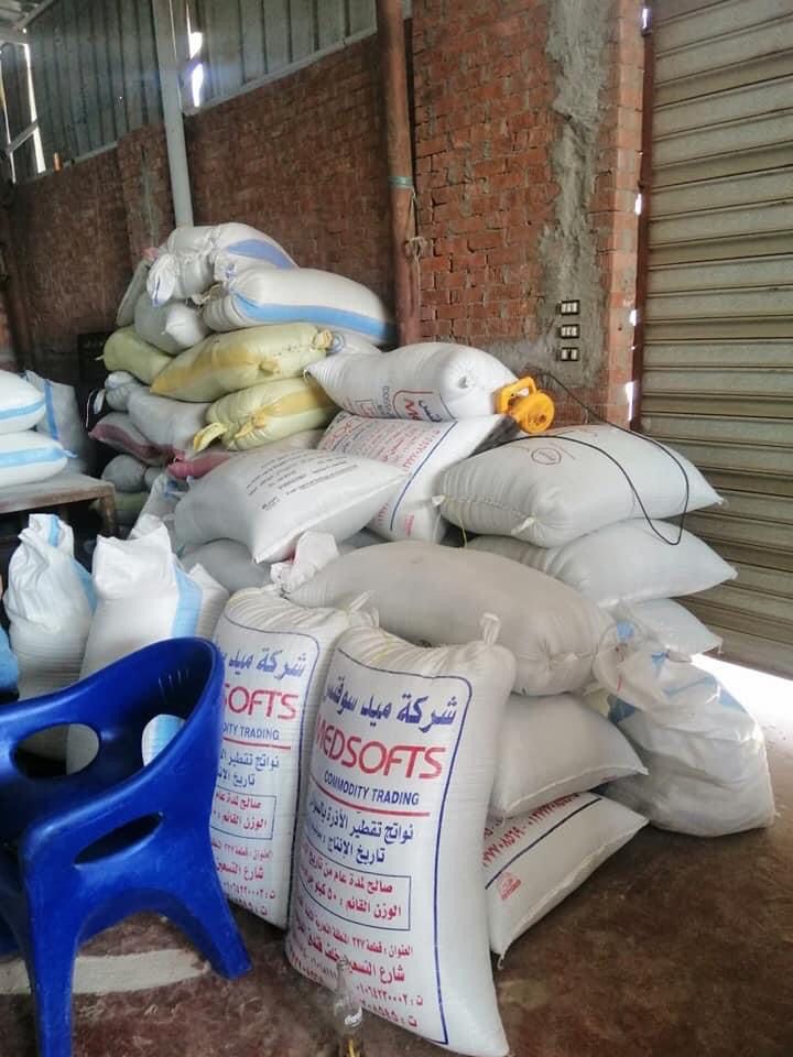 أسفرت الحملة عن ضبط وتحرير محضر ضد صاحب مصنع لإعادة تدوير أكياس القمامة وتحويلها إلى حبيبات بلاستيكية يتم استخدامها في صناعات أخرى داخل شكائر غير مدون عليها أي بيانات تفيد الإنتاج والصلاحية والمواصفات ومحاذير الاستخدام وعليه تم التحفظ على 250 شيكارة من حبيبات البلاستيك زنة الشيكارة الواحدة 40 كجم وغير مدون على الشكائر أي بيانات بإجمالي وزن 10 أطنان وعدد 600 شيكارة فارغة لزوم التعبئة.