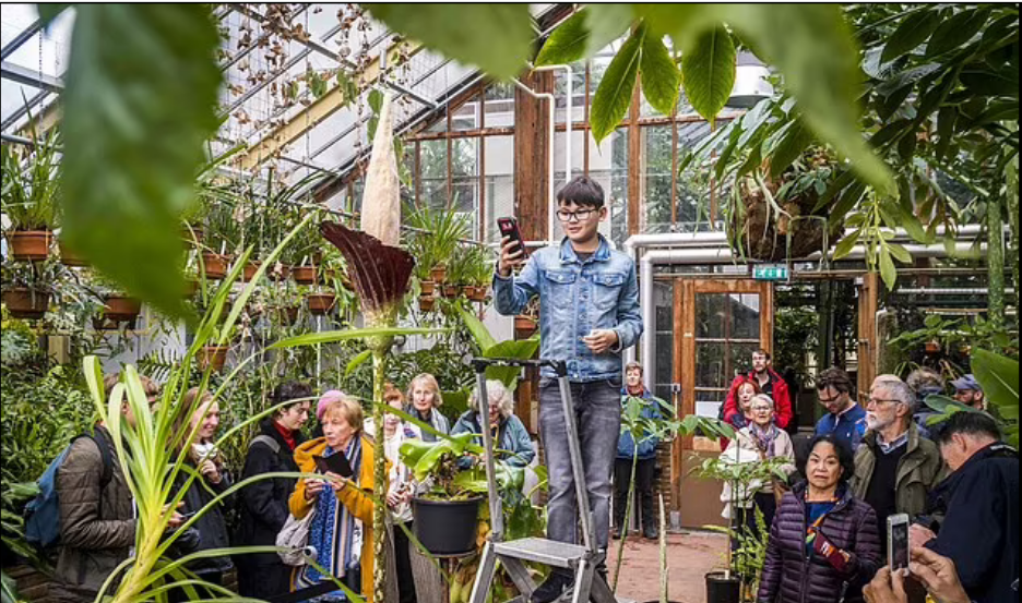 وموطنه الأصلي الغابات الاستوائية المطيرة في إندونيسيا، وتتطلب بيئة حارة ورطبة، لكن واحدة بدأت تزهر في 22 أكتوبر الماضي في واحدة من أقدم الحدائق النباتية في العالم بهولندا، وازدهرت بالكامل في وقت لاحق من هذا الأسبوع.