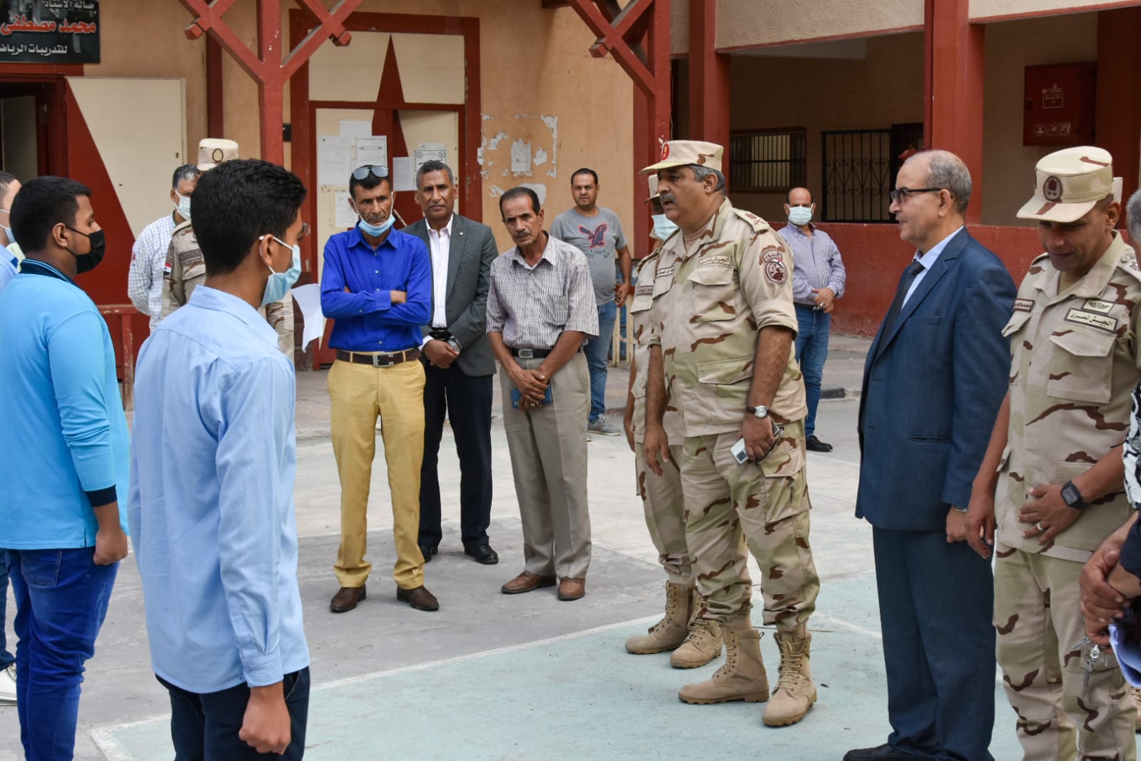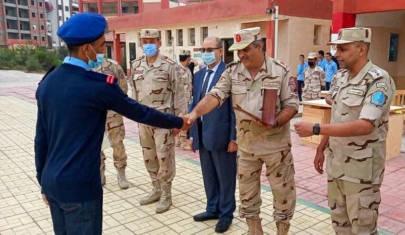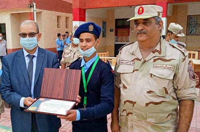 كرم اللواء أركان حرب أشرف آدم، قائد قطاع الإسماعيلية للمدارس العسكرية، والعقيد محمد عبد الهادي المستشار العسكري للمحافظة، والدكتور نبوي باهى وكيل وزارة التربية والتعليم ببورسعيد، اليوم الاثنين، طلاب مدرسة بورسعيد الثانوية الصناعية الزخرفية العسكرية للبنين، وذلك لمشاركتهم في التدريب العملي صقر 80.