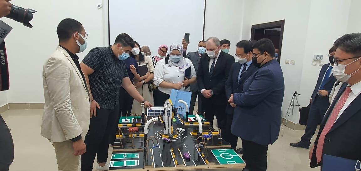 وتفقد الوفد الكوري معامل الجديدة التابعة لبرنامج الطاقة الجديدة والمتجددة، والمعامل الدراسية الجديدة بالجامعة التابعة لبرنامج الأوتوترونكس، بعد تزويدها بالأجهزة والآلات التكنولوجية المتطورة والمعامل الدراسية التابعة لبرنامجي الميكاترونكس وتكنولوجيا المعلومات بالجامعة.