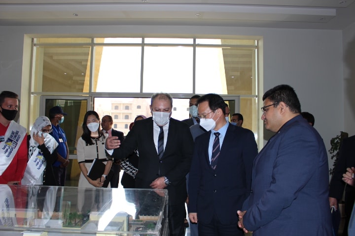 وخلال الزيارة، قدّم الدكتور محمد شكر ندا، رئيس الجامعة، عرضًا تفصيليًا لإمكانيات جامعة بني سويف التكنولوجية؛ يتضمن شرحًا للبرامج الدراسية والمعامل التكنولوجية الدراسية الموجودة بها، والبروتوكولات الموقعة مع الكيانات الصناعية والهيئات والجهات والشركات المختلفة، بالإضافة إلى عرض أنشطة الجامعة الثقافية والعلمية وأنشطة مكتب ريادة الأعمال الذي تم إنشاءه مؤخرًا بالجامعة، كما تضمن العرض المؤتمرات العلمية التي نظمتها الجامعة وعلى رأسها المؤتمر الدولي الأول للجامعة - تطوير التعليم التكنولوجي حول العالم (خبرات وتحديات)، والمؤتمر الأول للتعليم والتدريب الفني والمهني (TVET) الذي يجرى العمل على تحضيره حاليًا مع الجانب الكوري في نوفمبر 2021، بالإضافة إلى عرض خطة الجامعة المستقبلية؛ التي تتضمن إمكانية التوسع في البرامج الدراسية والإنشاءات والمباني الجديدة من خلال ضم واحة السيلكون بكل من محافظتي بني سويف، أسيوط، والمجمع التكنولوجي بالفيوم التابع لصندوق تطوير التعليم.