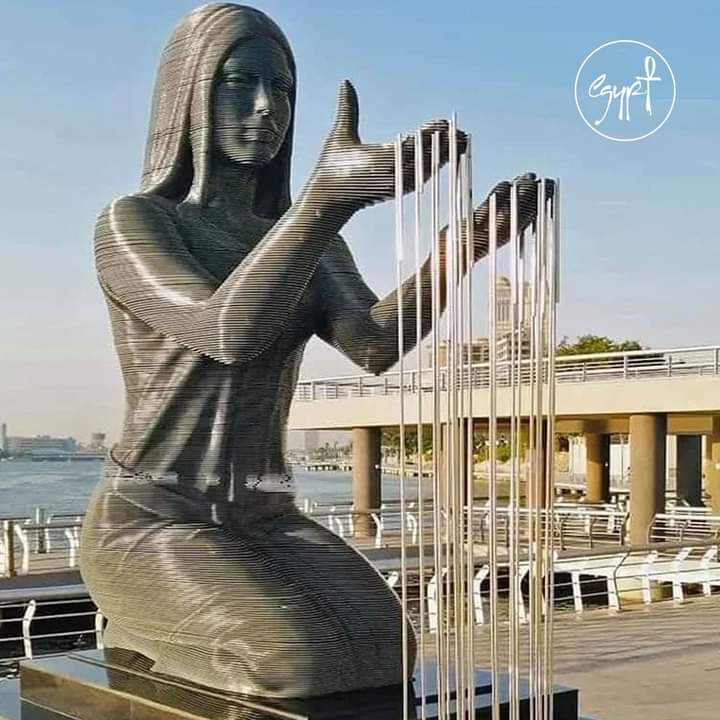 وأوضحت إدارة الصفحة الرسمية لهيئة تنشيط السياحة، أن التمثال مكون من طبقات من الحديد، وتم تصميمه بشكل يدل على ارتباط مصر بنهر النيل.