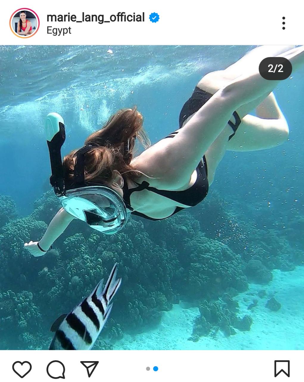 وتؤكد خلال نشر صورها وفيديوهات في مصر، على جمال بلادنا، قائلة: الآن سيتم تعويض العطلة الصيفية في الوقت الحالي، عطلة السفر في مصر، ماري لانج، بطل العالم في لعبة الكيك بوكسينج.