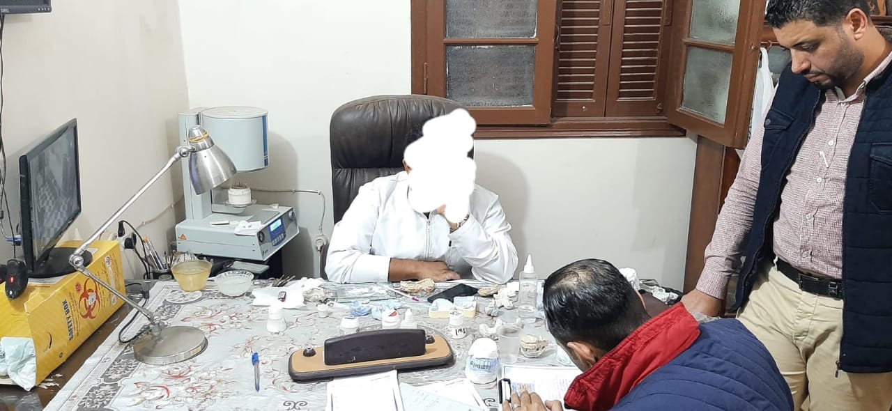 تمكنت مديرية الصحة بالغربية إدارة العلاج الحر من ضبط “و. أ” يقوم بانتحال صفة طبيب أسنان بمدينة المحلة الكبرى، يعمل موظفا بأحد مكاتب الصحة ويقوم بالكشف على المرضى بعيادة أسنان مجهزة، ويوجد أيضا بالعيادة غرفة ملحقة بها معمل أسنان، وقد أقر المرضى الموجودون بالعيادة أنه يقوم بتوقيع الكشف الطبي عليهم وعمل إجراءات طبية مثل الحشو والخلع والتركيبات.