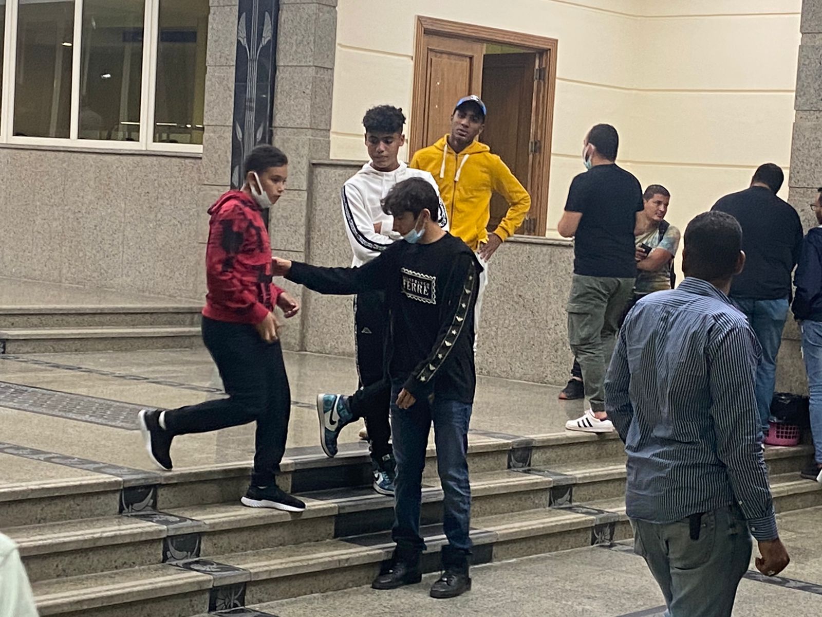 ويأتي ذلك بعدما حاولوا الصعود إلى المقصورة، لمتابعة المباراة من الأعلى، الأمر الذي أدى إلى وجود مشادة بين الطرفين.
