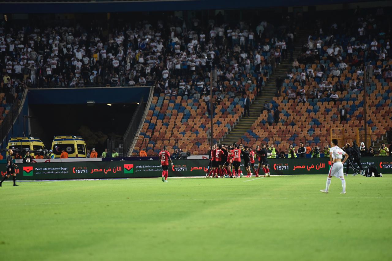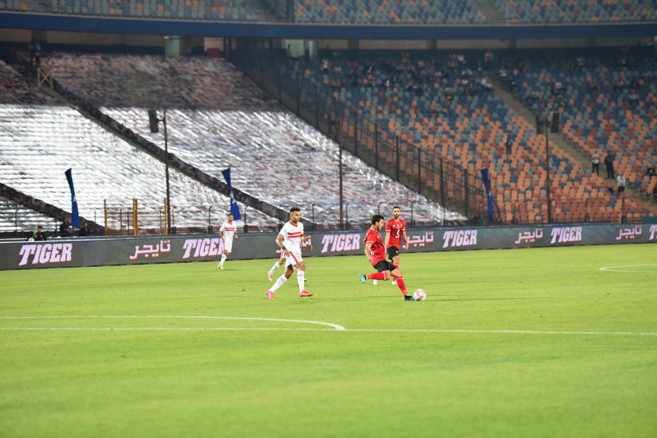 وحاول فريق الزمالك العودة للمباراة لكن لم تثمر تحركاته عن أي خطورة على مرمى الأهلي، عدا فرصة واحدة أنقذها محمد الشناوي حارس الأهلي من على خط مرمى فريقه في الوقت بدل الضائع للشوط الأول.