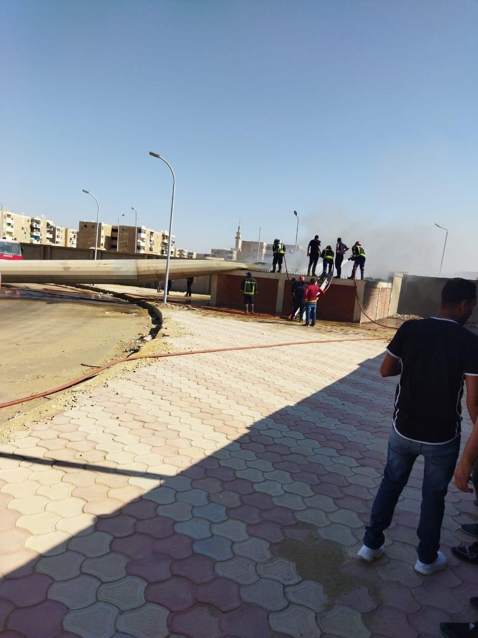 وتسبب الحريق في انهيار برج تقوية شبكات فيما وصلت 5 سيارات إطفاء إلى موقع الحريق للسيطرة على النيران.