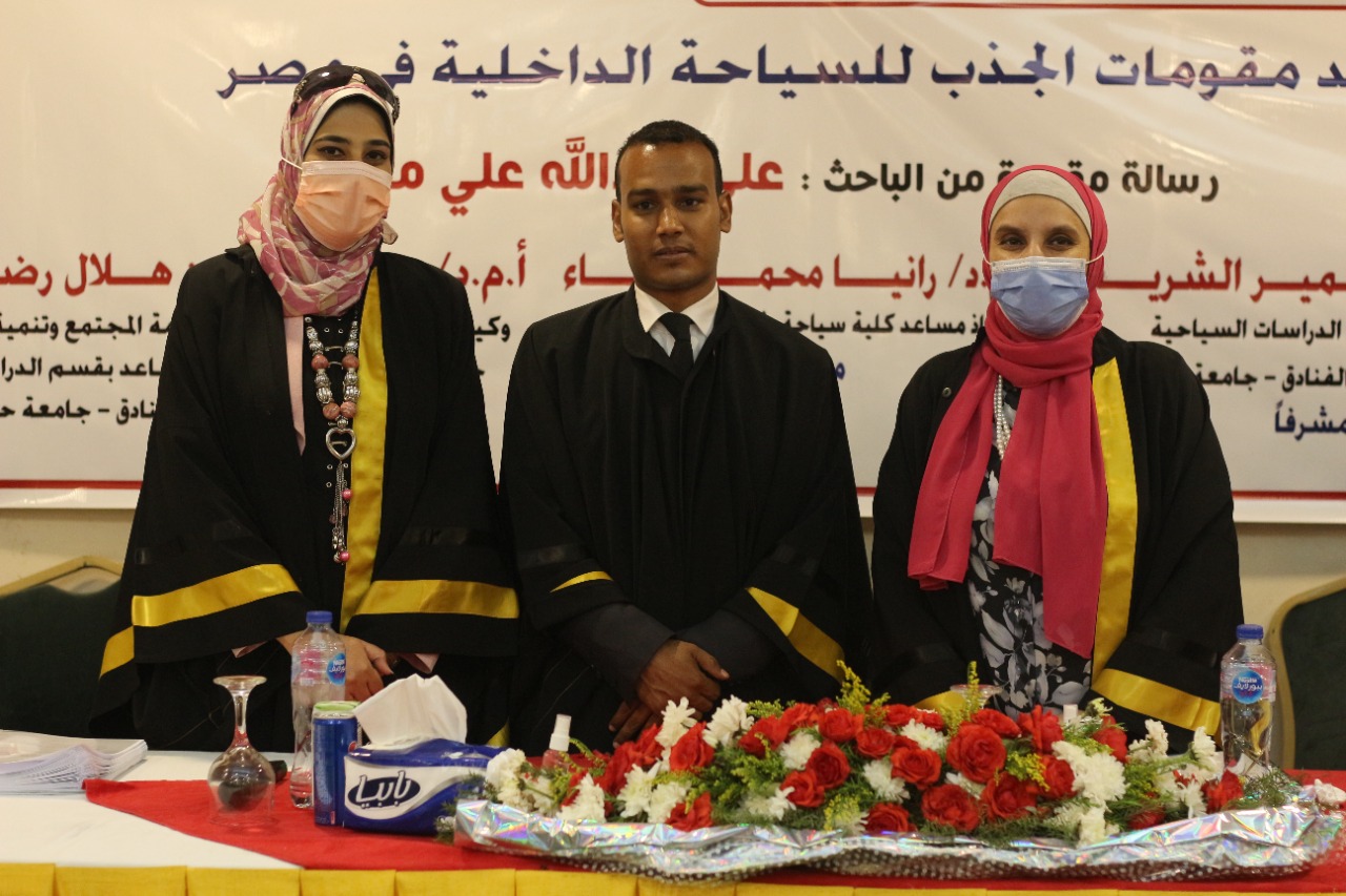 يذكر أن الرسالة تم مناقشتها، تحت إشراف كل من الدكتورة نشوة سمير الشريف أستاذ بقسم الدراسات السياحية بكلية السياحة والفنادق جامعة حلوان، والدكتور صلاح الدين هلال وكيل كلية السياحة والفنادق لخدمة المجتمع وتنمية البيئة لجامعة بني سويف.