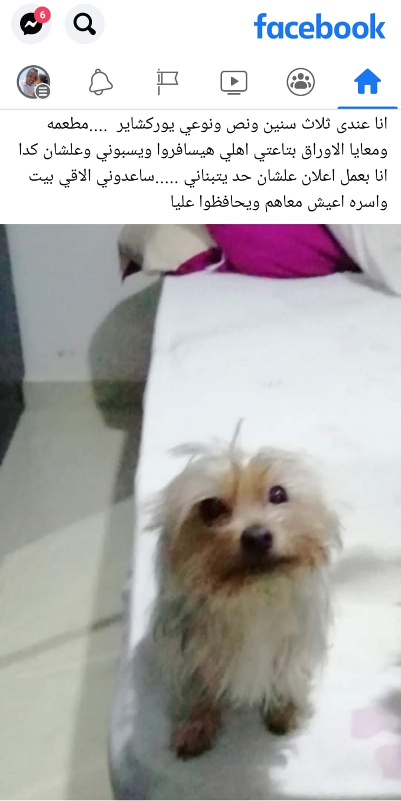 أنا عندى ثلاث سنين ونص ونوعي يوركشاير، مطعمة ومعايا الأوراق بتاعتي، أهلي هيسافروا ويسيبوني وعلشان كدا أنا بعمل إعلان علشان حد يتبناني، ساعدوني ألاقي بيت وأسرة أعيش معاهم ويحافظوا عليا.