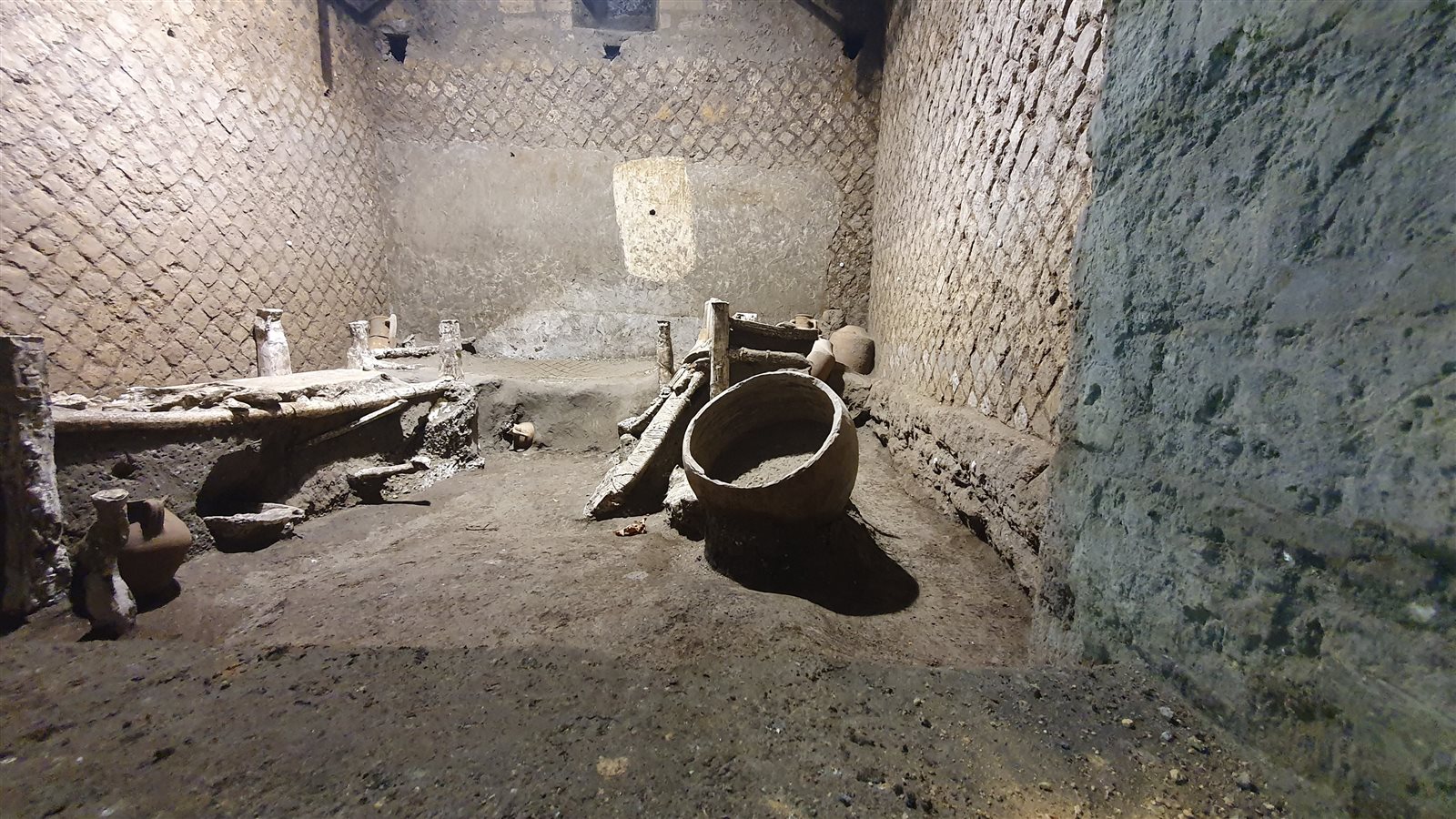 عثر هذه الغرفة بفيلا قديمة ترجع إلى العصر الروماني، دمرها بركان جبل فيزوف الثائر منذ 2000 عام، وقد حافظت ترسبات البركان على الغرفة، خاصة حجر السينيريت، وهو صخر بركاني، ويرجع أهمية هذا الكشف الهام، إلى مساعدة الباحثين، لمعرفة شكل الحياة اليومية للعبيد في تلك الفترات.