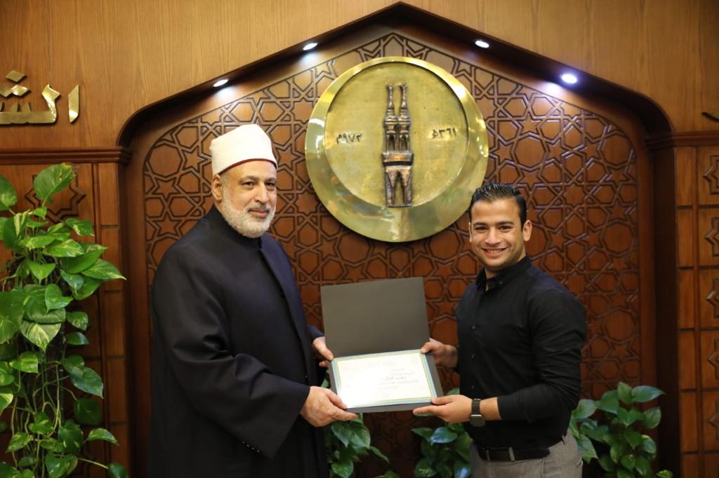كرَّم الأستاذ الدكتور محمد الضويني وكيل الأزهر الشريف، اليوم الثلاثاء، بمقر مشيخة الأزهر مجموعة من الطلاب المتميزين والموهوبين في مجال تلاوة القرآن الكريم والإنشاد الديني، من طلاب الأزهر المشاركين في احتفالية افتتاح المتحف الحربي القومي، واحتفالية الأزهر بذكرى المولد النبوي الشريف.
