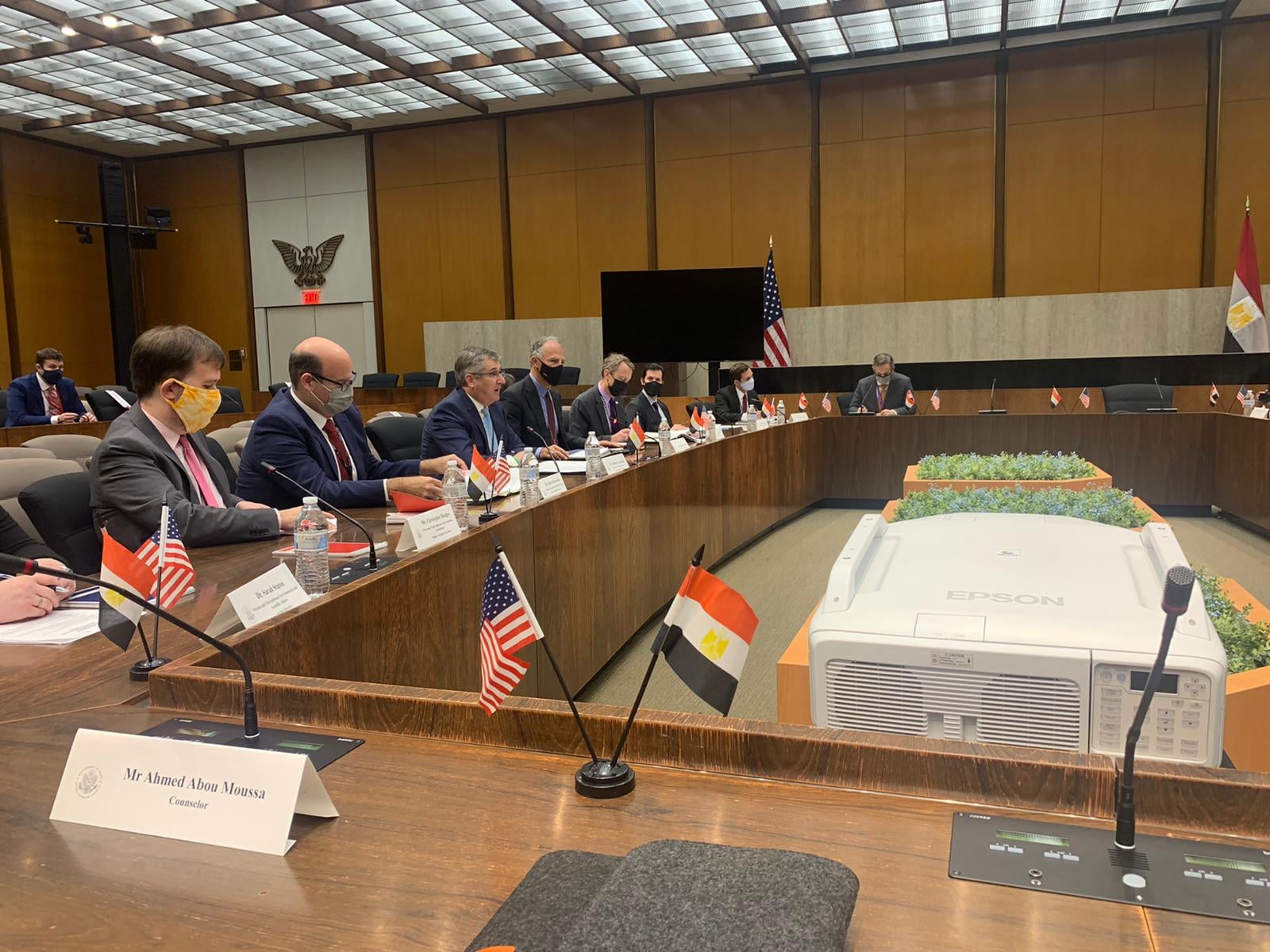 وأشار الجانبان إلى قرب حلول الذكرى المئوية للعلاقات الدبلوماسية بين الولايات المتحدة ومصر في عام 2022، وأعادا التأكيد على أهمية الشراكة الاستراتيجية بين الولايات المتحدة ومصر، وحددا مجالات مستهدفة لتعميق التعاون الثنائي والإقليمي، بما في ذلك الشؤون الاقتصادية والتجارية، والتعليم، والموضوعات الثقافية، والشؤون القنصلية، وحقوق الإنسان، والعدالة وإنفاذ القانون، والدفاع والأمن. واتفقا كذلك على أهمية إجراء هذا الحوار بشكل دوري.