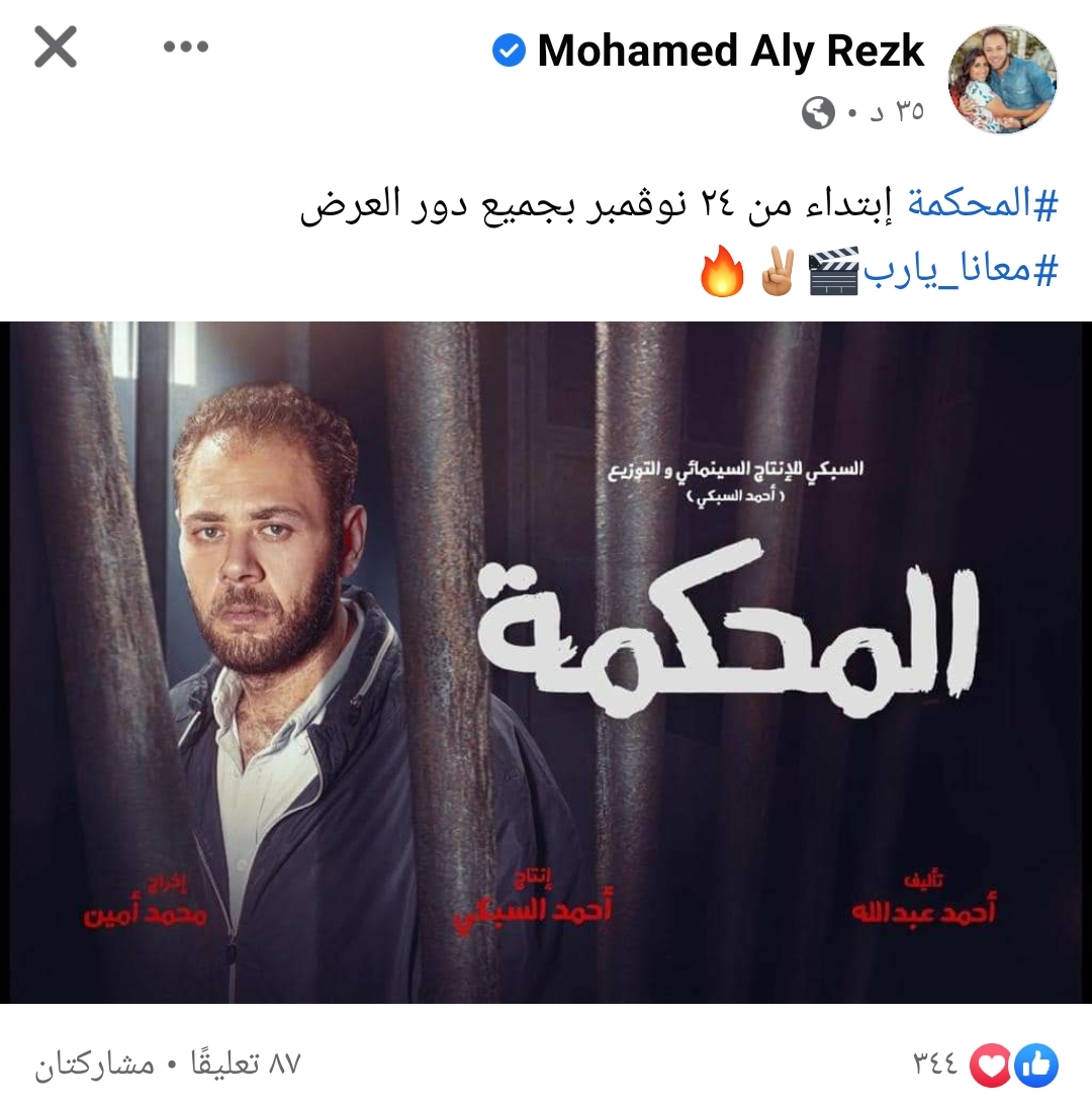 وشوق محمد علي رزق جمهوره لهذا العمل، من خلال طرحه البوستر الخاص به، عبر حسابه الشخصي بموقع التواصل الاجتماعي فيس بوك، وعلق عليها قائلًا: المحكمة ابتداءً من 24 نوفمبر بجميع دور العرض.. معانا يارب.