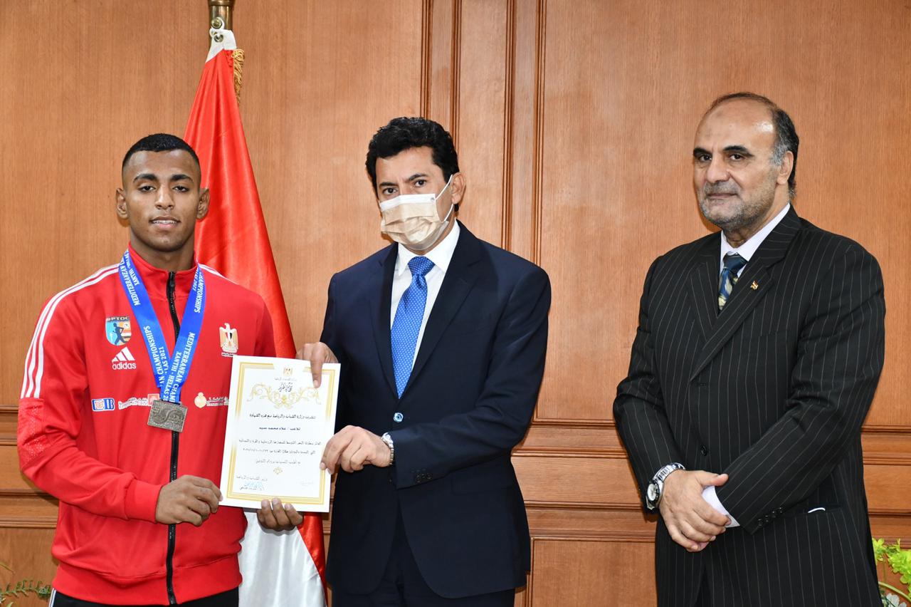 كرم الدكتور أشرف صبحي وزير الشباب والرياضة، فريق المصارعة للبطل الأولمبي، بعد حصولهم على 15 ميدالية في منافسات بطولة البحر الأبيض المتوسط للمصارعة والتي أقيمت بدولة اليونان، والتى شارك بها 13 دولة خلال الفترة من 17 أكتوبر وحتى الأول من نوفمبر 2021.