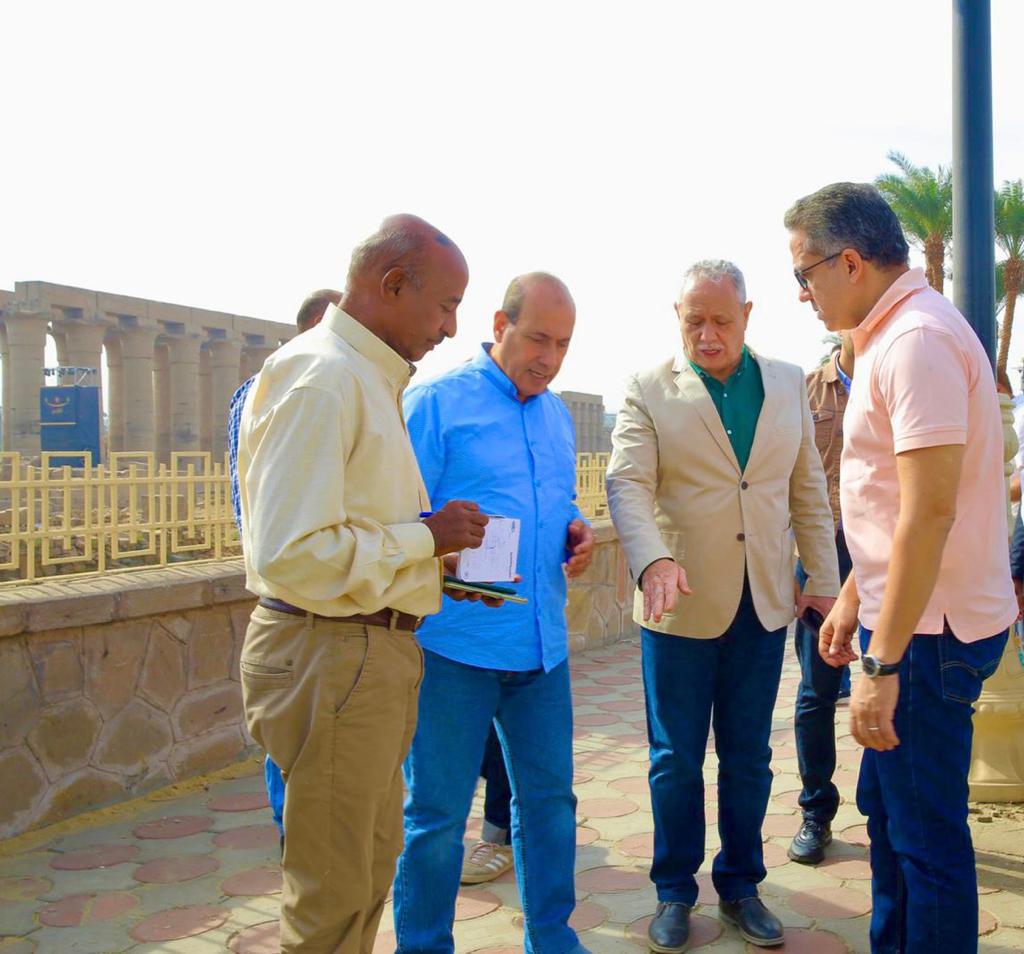 واستهل وزير السياحة والآثار جولته مع محافظ الأقصر بتفقد المناطق والشوارع المحيطة بمعبد الأقصر وطريق الكورنيش حيث وجه الوزير باستكمال أعمال رفع كفاءة الطرق والأرصفة، وكذا أعمال الزراعات والأشجار والنخيل وأحواض الزرع الموجودة علي طول طريق الكورنيش والميادين، كما وجه باستكمال دهان الأسوار وأعمدة الإضاءة وواجهات البازارات السياحية الواقعة علي الطريق وتجميل اللوحات الإرشادية بالشوارع، لتحقيق مظهر حضاري للمنطقة بأسرها.