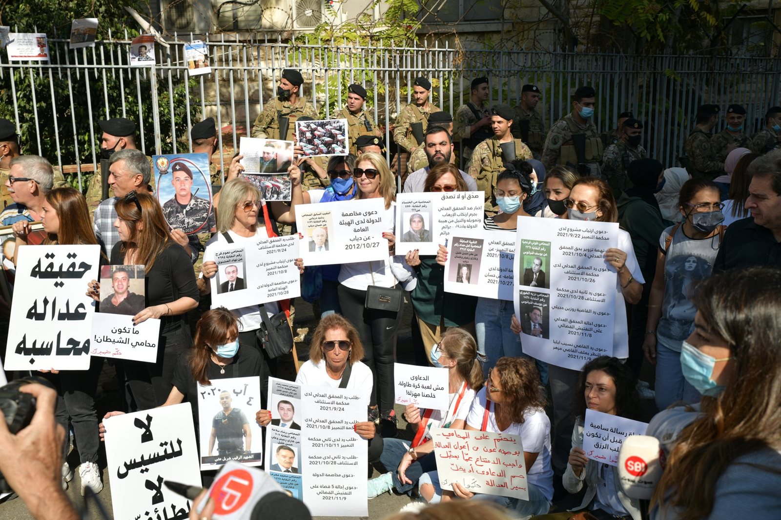 نظّم أهالي ضحايا انفجار مرفأ بيروت، احتجاجا اليوم الخميس، أمام قصر العدل، وذلك دعما لـ طارق البيطار، قاض التحقيق في القضية، والذي طالبته القوى السياسية بالاستقالة في وقت سابق، وسط إجراءات أمنية مشددة.