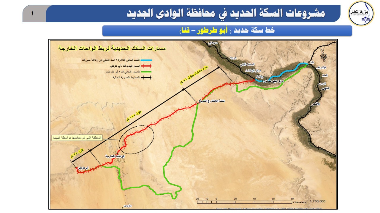 تابع الدكتور مصطفى مدبولي، رئيس مجلس الوزراء، خلال زيارته محافظة الوادي الجديد، مع المهندس كامل الوزير، وزير النقل، مشروع إعادة تأهيل ورفع كفاءة خط سكة حديد قنا - أبو طرطور.