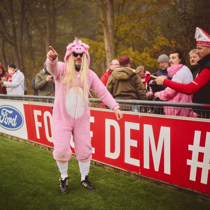 مدرب فريق كولن الألماني يثير الجدل في تدريبات فريقه بزي وحيد القرن I صور