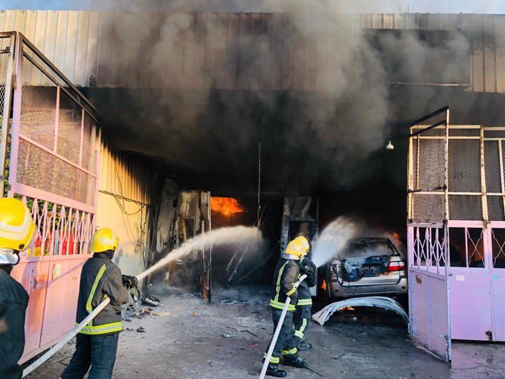 الدفاع المدني السعودي يخمد حريقا في مركز لصيانة السيارات دون إصابات