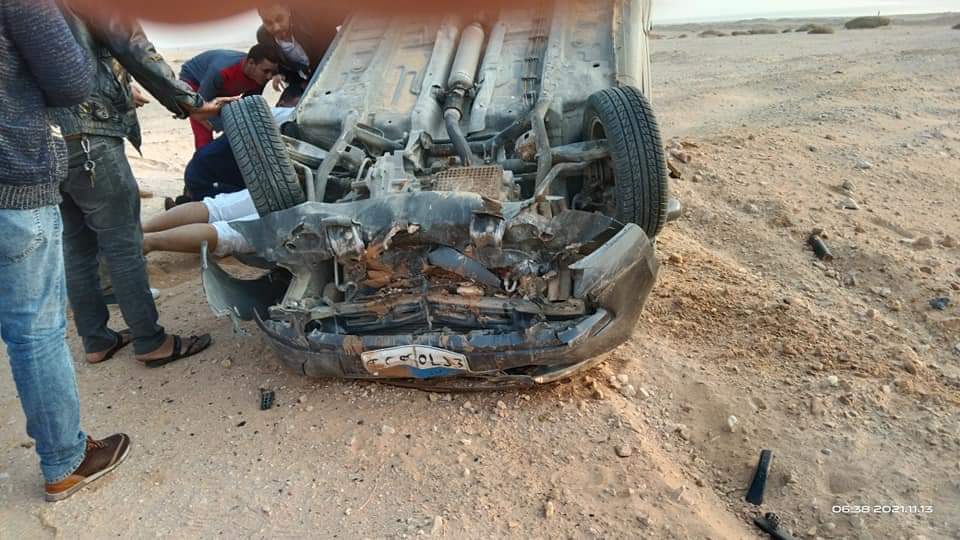 إصابة 4 أشخاص في انقلاب سيارة بطريق رأس غارب - الزعفرانة شمال البحر الأحمر | صور
