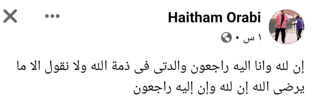 وكتب عرابي، عبر صفحته الشخصية على موقع التواصل الاجتماعي فيسبوك: إنا لله وإنا إليه راجعون، والدتي في ذمة الله ولا نقول إلا ما يرضي الله، إنا لله وإنا إليه راجعون.