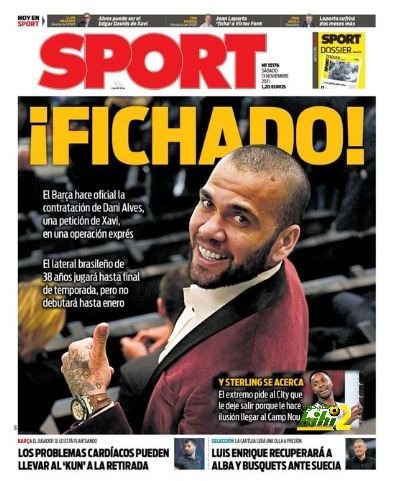 تصدر البرازيلي داني ألفيس، غلاف صحيفة سبورت لعدد اليوم، وذلك تحت عنوان تم التوقيع، برشلونة ينهي أولى صفقاته الشتوية بعد الحصول على موافقة المدرب تشافي هيرنانديز.