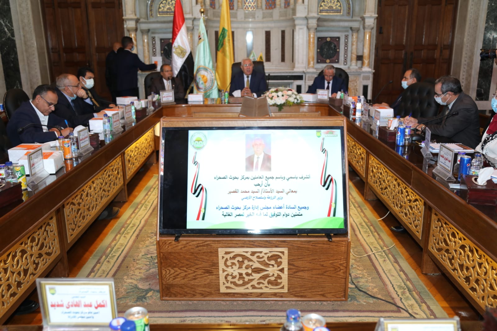 وفي الإطار التالي، عقد القصير، اجتماع مجلس الإدارة بحث بعض الموضوعات الإدارية والمالية الخاصة بالعاملين والباحثين في مركز بحوث الصحراء وحضره كل من الدكتور محمود صقر، رئيس أكاديمية البحث العلمي والتكنولوجيا، والدكتور محمد سليمان رئيس مركز البحوث الزراعية، والدكتور محمد الشحات رئيس هيئة التعمير والتنمية الزراعية ونواب رئيس مركز بحوث الصحراء وقيادات المركز.
