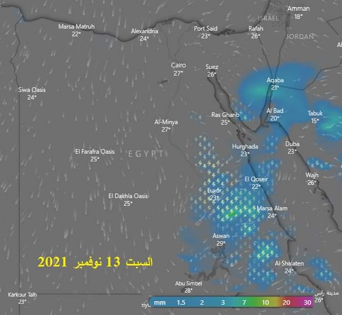وأضاف شراقي، عبر صفحته الرسمية بموقع التواصل الاجتماعي فيسبوك، أن هذه الأمطار صاحبها برق ورعد وبرد وكتل ثلجية، نتيجة انخفاض درجة الحراة في الطقس، مشيرًا إلى أن هذه الأمطار تسبب سيول، وتعمل مخرات السيول إلى نقل هذه المياه إلى نهاية المخرات سواء البحر الأحمر للجانب الشرقي أو اتجاه نهر النيل بالنسب للجانب الغربي.