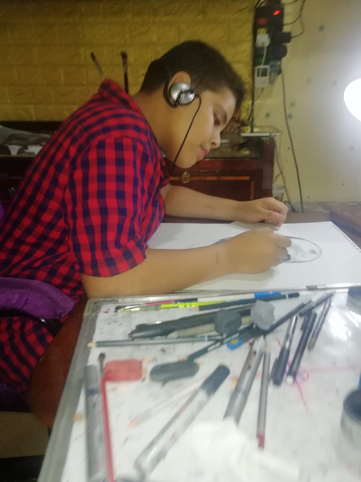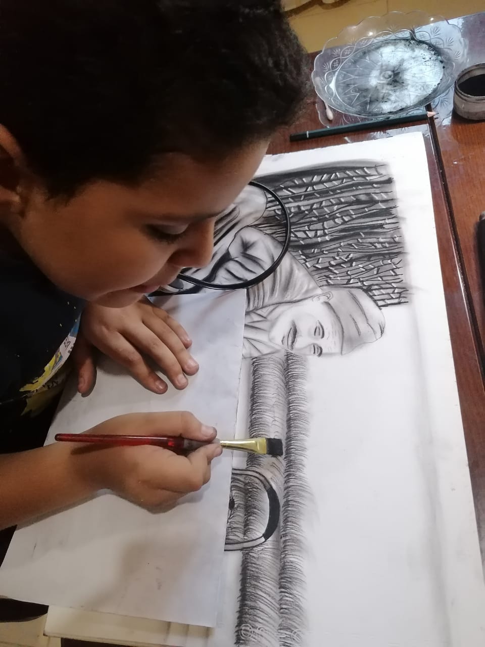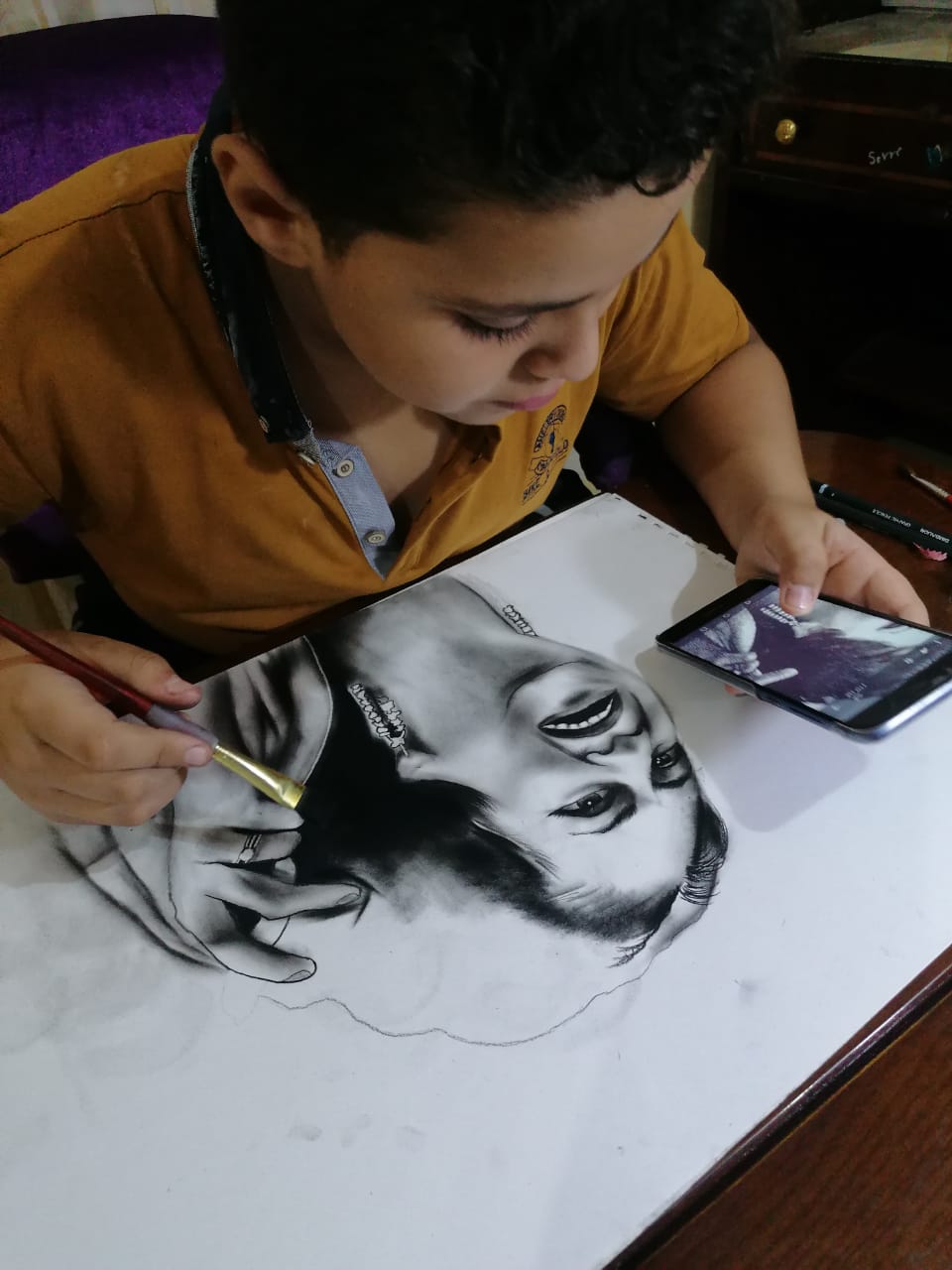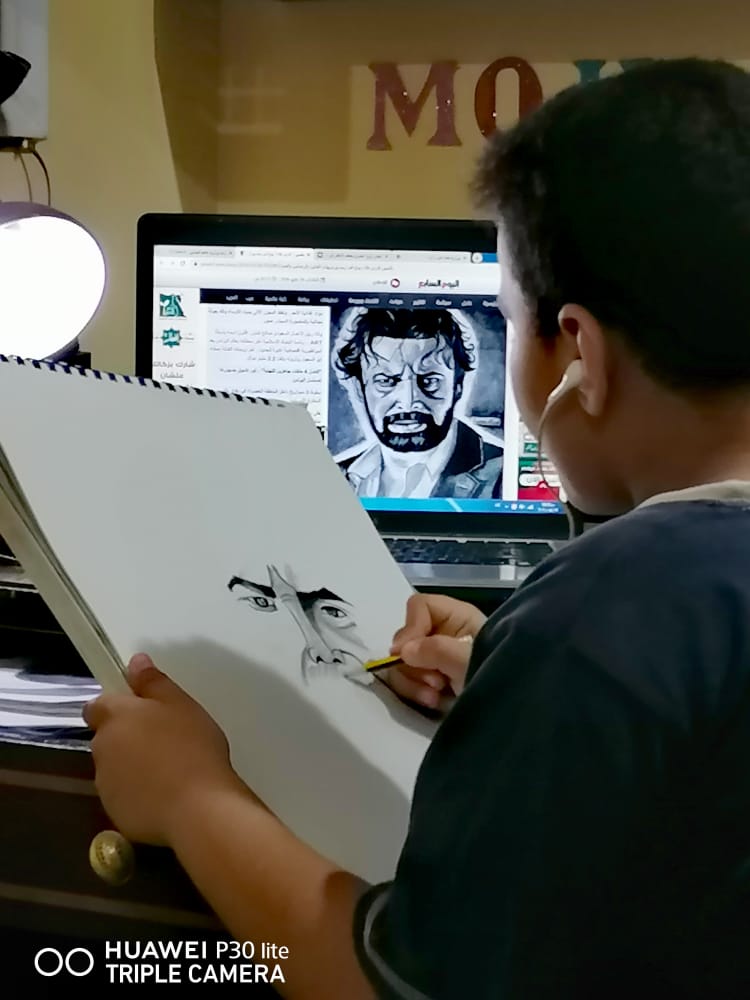 وتابع: بدأت أرسم بورتريهات لأشخاص غريبة لما أختي طلبت مني بورتريه لصديقتها في عيد ميلادها ورسمته، وكل أصدقاءها مصدقوش إن أنا اللي رسمه، ومن بعدها بدأوا يطلبوا مني رسومات كثير وحاليا بدأت آخذ مقابل.