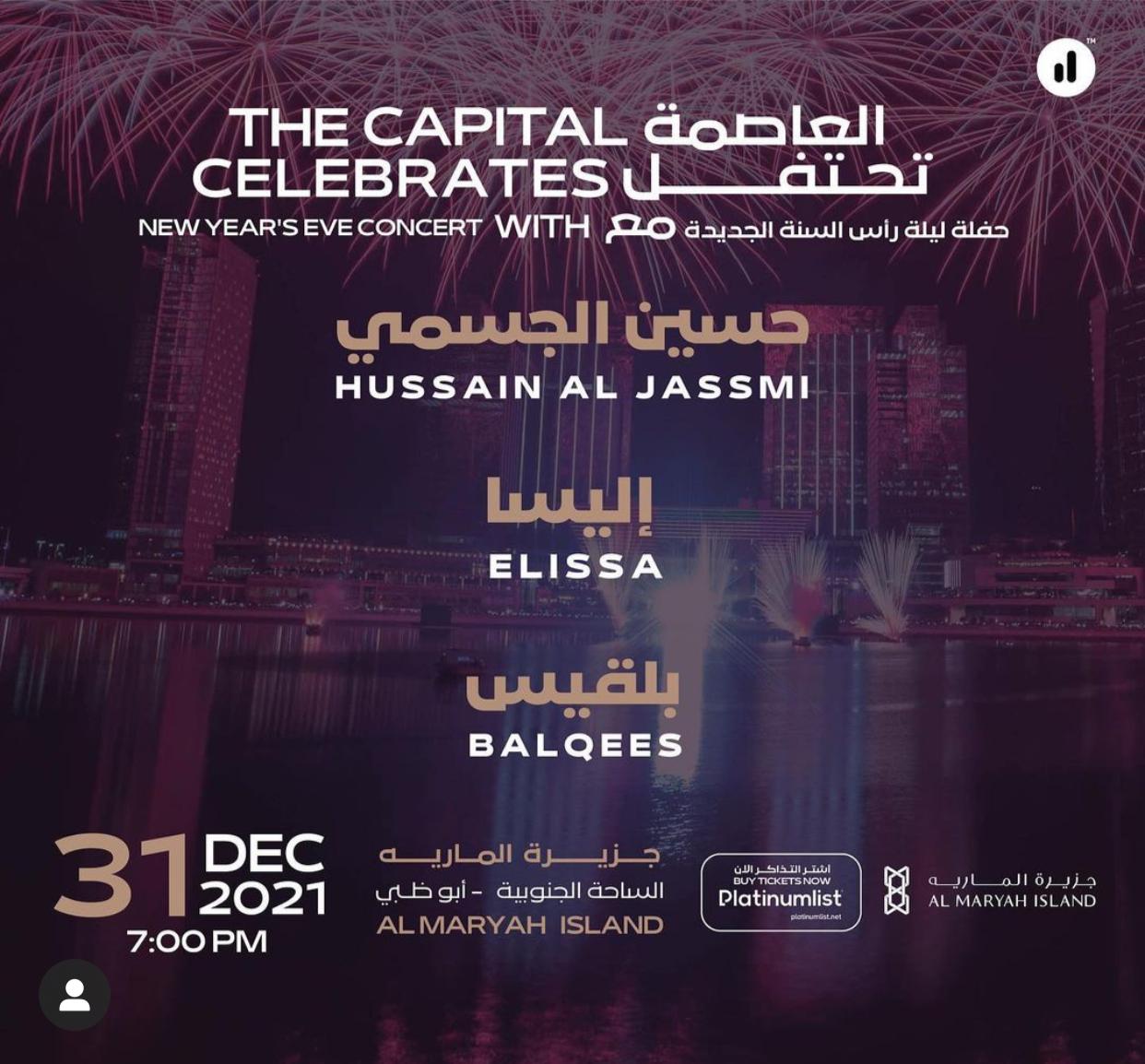 يستعد عدد كبير من نجوم الفن أبرزهم الفنان حسين الجسمي والفنانة إليسا والفنانة بلقيس، لإحياء حفل غنائي يوم 31 ديسمبر المقبل في تمام الساعة 7:00 مساءً بإمارة أبو ظبي، وذلك احتفالا بليلة رأس السنة.