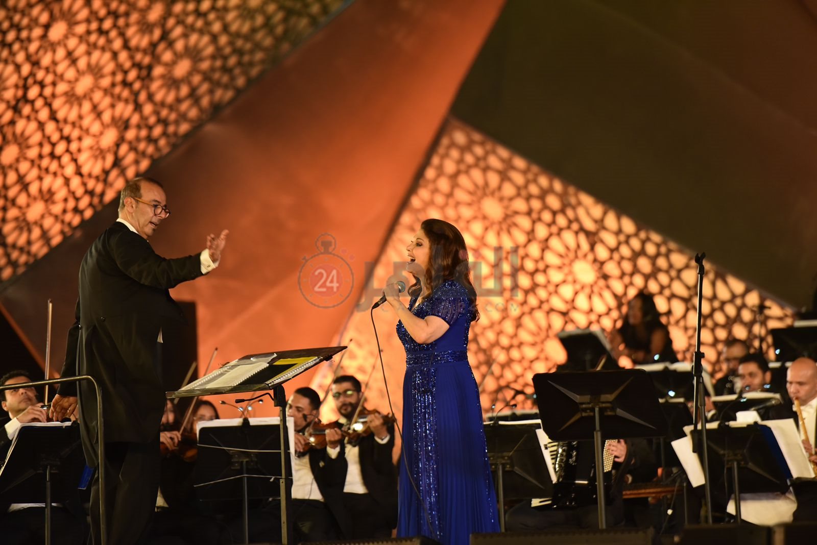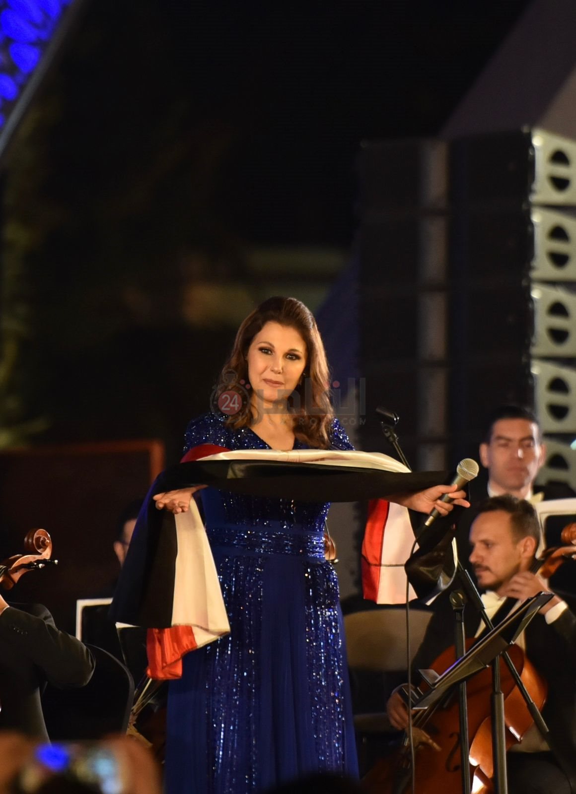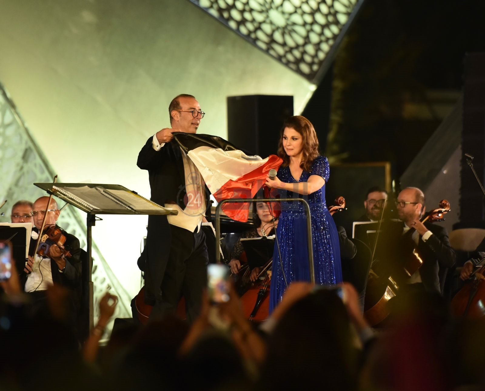 ماجدة الرومي تنحني لعلم مصر خلال حفلها بدار الأوبرا