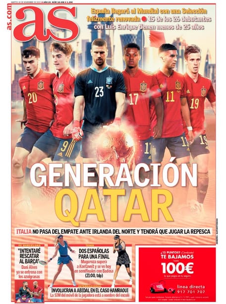 عنونت صحيفة آس الإسبانية في غلافها بالعنوان جيل قطر، وذلك بوضع كافة لاعبي منتخب إسبانيا بعد إنجازهم بالتأهل للمونديال 2022 تحت قيادة إنريكي.