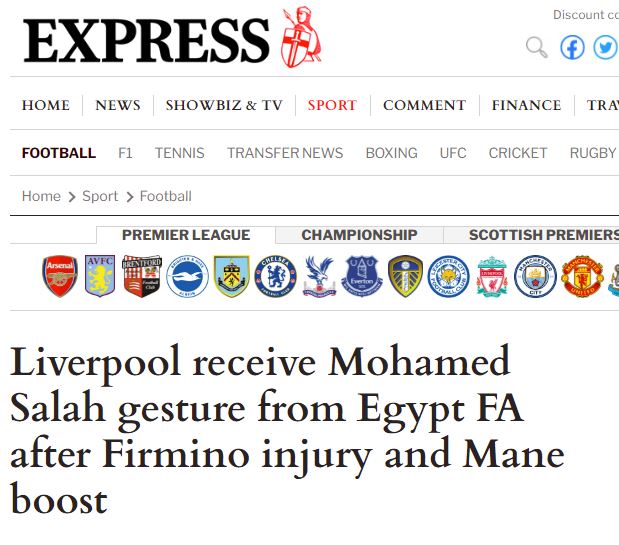 وأوضحت صحيفة ديلي إكسبريس، أن الجهاز الفني للمنتخب الوطني بقيادة كارلوس كيروش بالتنسيق مع الاتحاد المصري لكرة القدم، تلقى إشارة بإمكانية جلوس صلاح على دكة البدلاء؛ لعدم التأثير على فريق ليفربول بشكل سلبي حال إصابته، وذلك مع زيادة إصابات الفريق في فترة التوقف الدولي.
