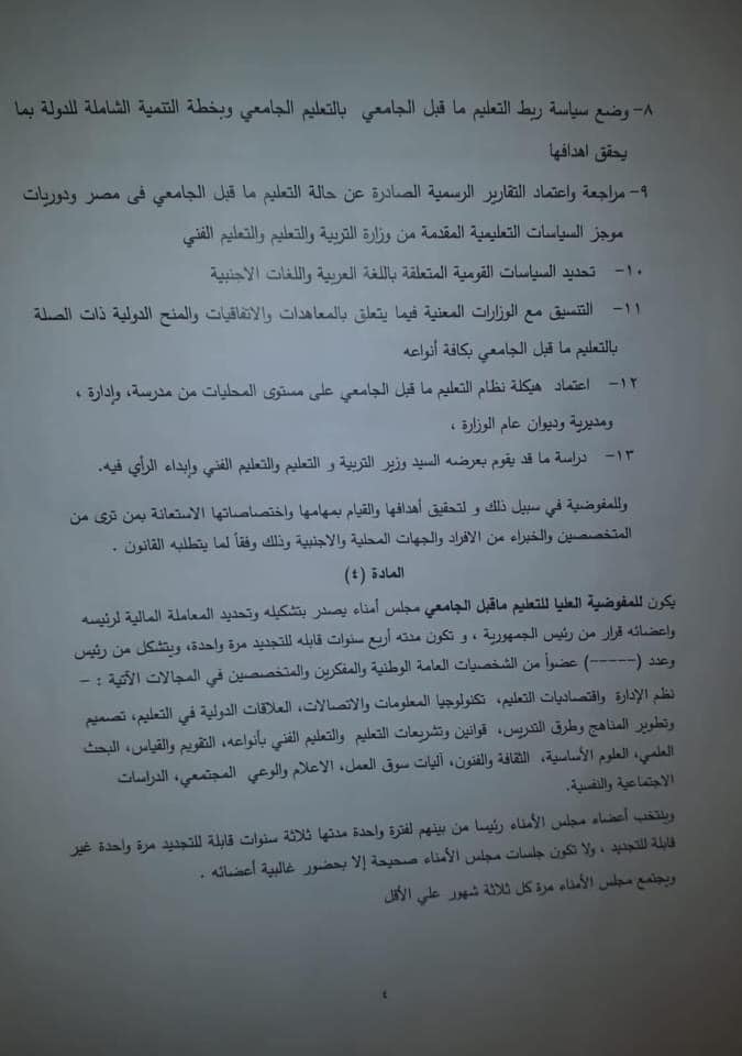 مشروع قانون في البرلمان لإنشاء مفوضية العليا للتعليم قبل الجامعي | مستند