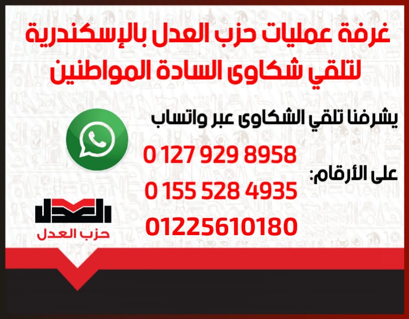 حزب العدل يشكل غرفة عمليات لتلقي شكاوى المواطنين بـ الإسكندرية استعدادا للطقس السيئ