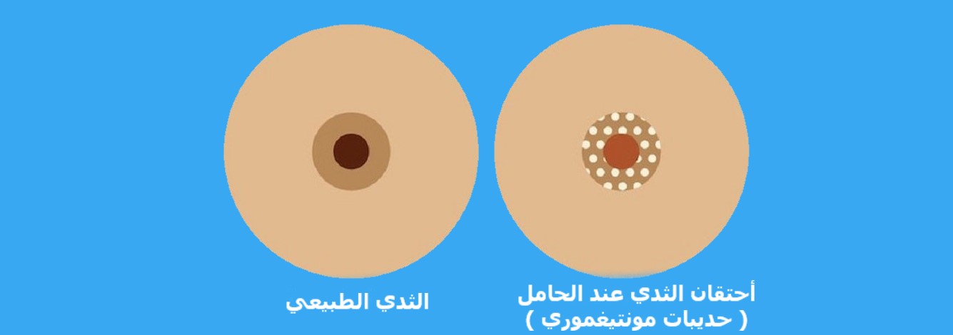 - حنان الثدي وتغيرات لون الحلمة نظرا لارتفاع هرمون البرولاكتين في الدم وهو الهرمون المسؤول عن إدرار الحليب.
