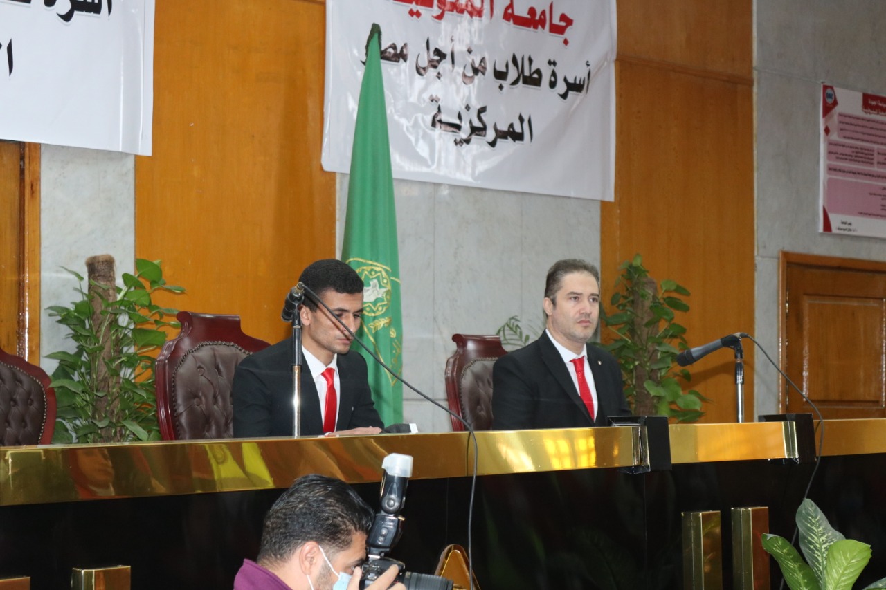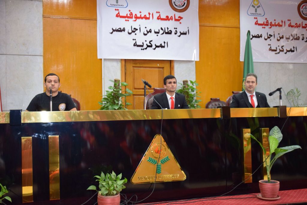 أقيمت اليوم احتفالية أسرة طلاب من أجل مصر، بجامعة المنوفية، وذلك لبدء انطلاق ماراثون انتخابات اتحاد الطلاب بالجامعات المصرية 2021/2022 تحت شعار اليد التي تبني لا تهدم ابدًا.
