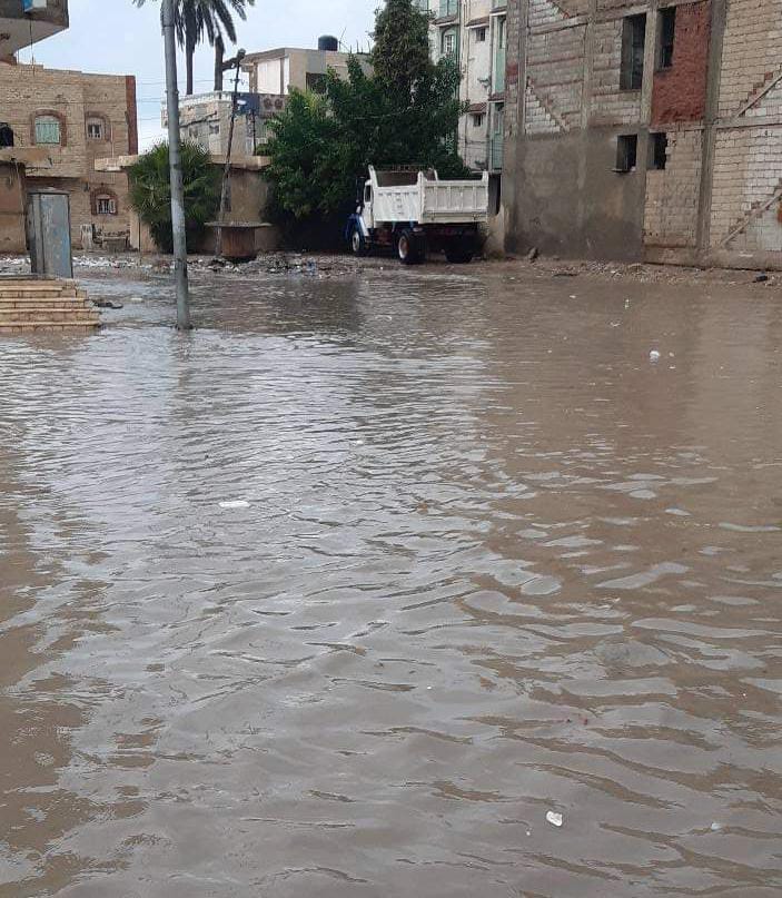 وانتشرت برك المياه بوسط الشوارع الرئيسية بسبب شدة هطول الأمطار التي بدأت منذ الساعات الأولى من صباح اليوم الجمعة، مصحوبة بانخفاض درجات الحرارة.
