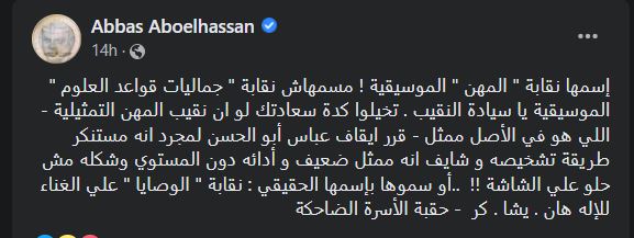 وسخر الفنان عباس أبو الحسن عبر حسابه بموقع فيس بوك من القرار، ووصف النقابة بأنها أصبحت تحت مسمي جماليات قواعد العلوم الموسيقية أو نقابة الوصايا.
