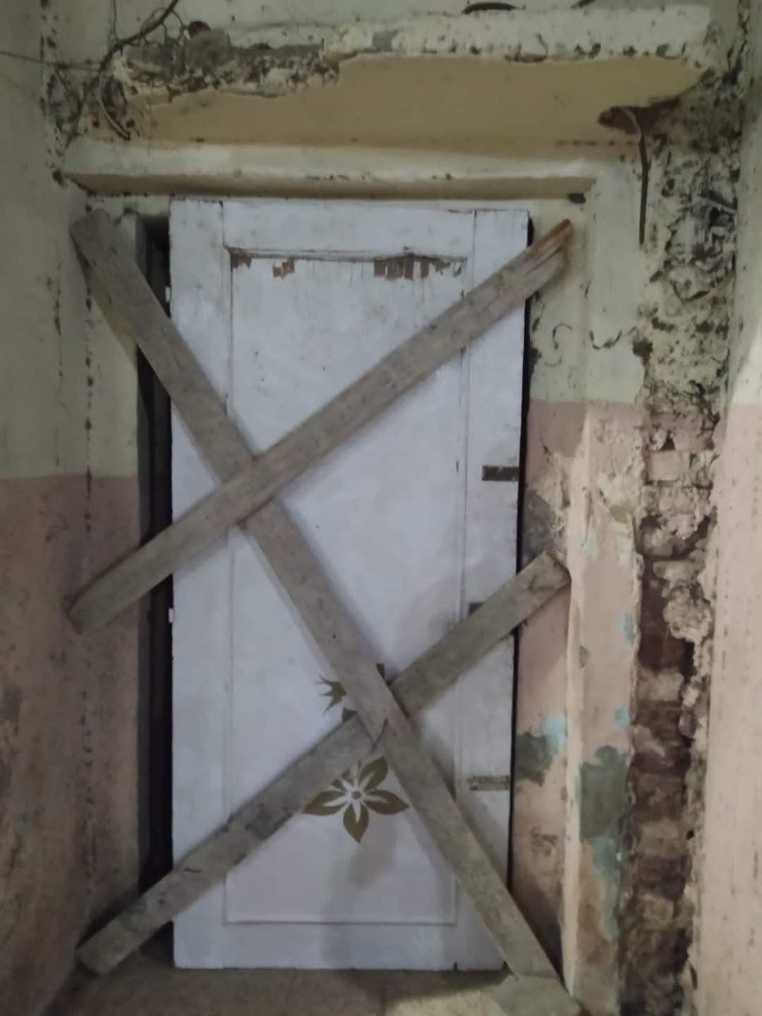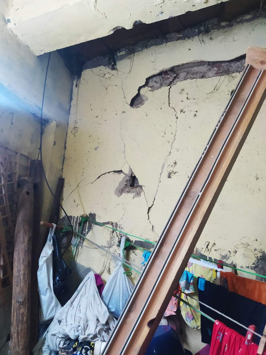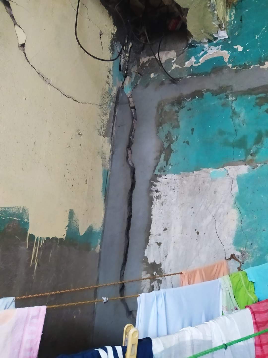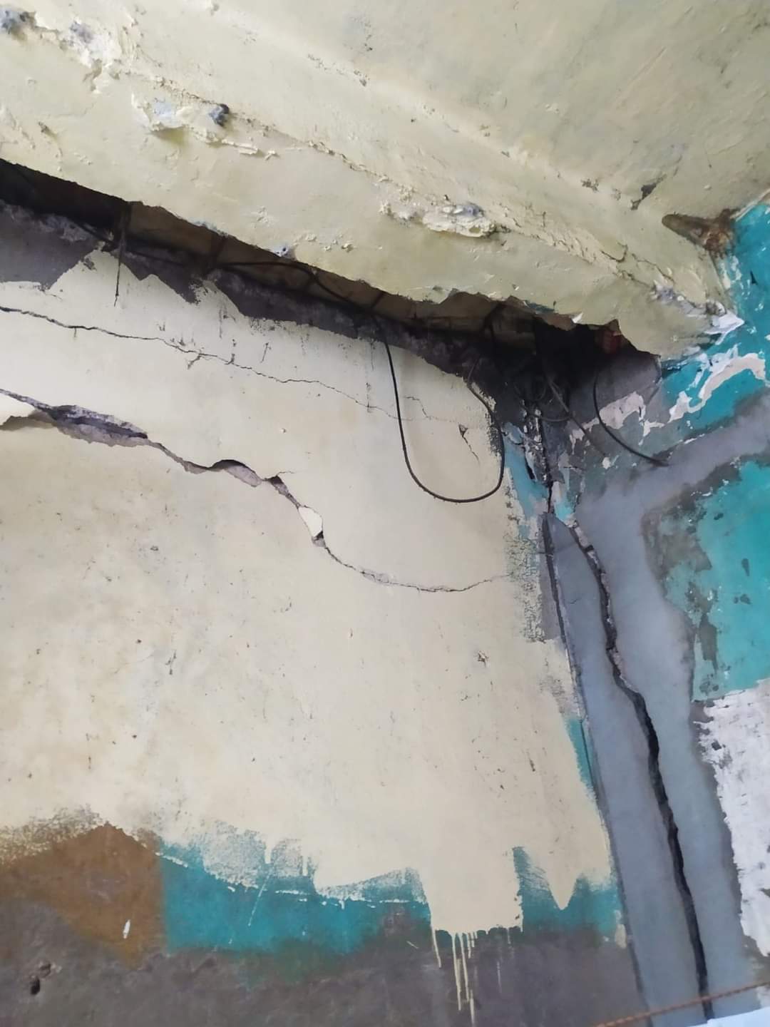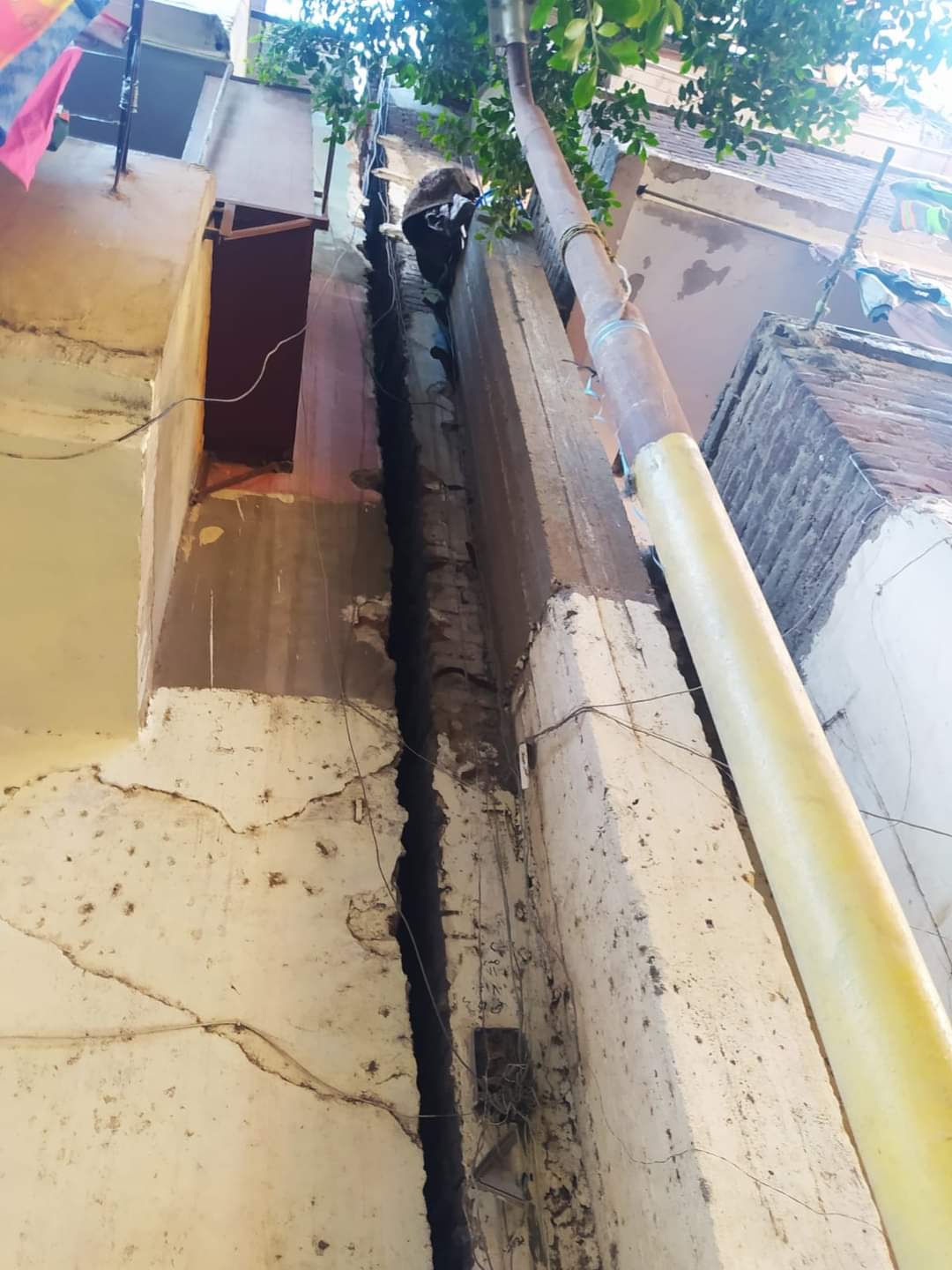 وتظهر الصور سقوط سلم العقار وتصدع الحوائط؛ مما يشكل خطورة على حياة السكان، وعلى العقارات المجاورة.
