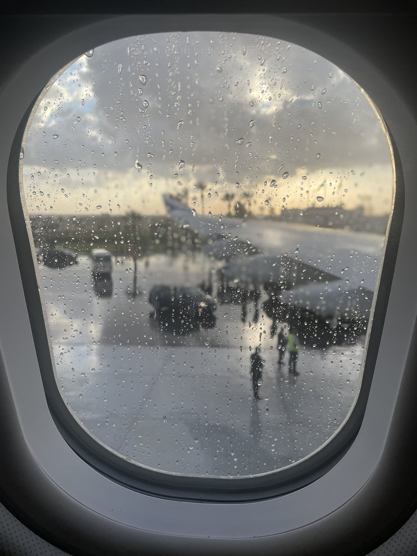 وأظهر فيديو نشرته المحررة الملكية في صحيفة ديلي ميل البريطانية، والمرافقة للأمير وزوجته في رحلتهما إلى مصر، تساقط الأمطار على الإسكندرية، موضحة أن الأمير وزوجته اضطرا إلى الإمساك بمظلتين أثناء صعودهما سلم الطائرة التي ستقلهما إلى بريطانيا.