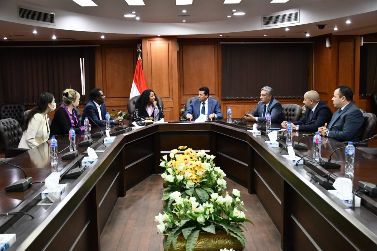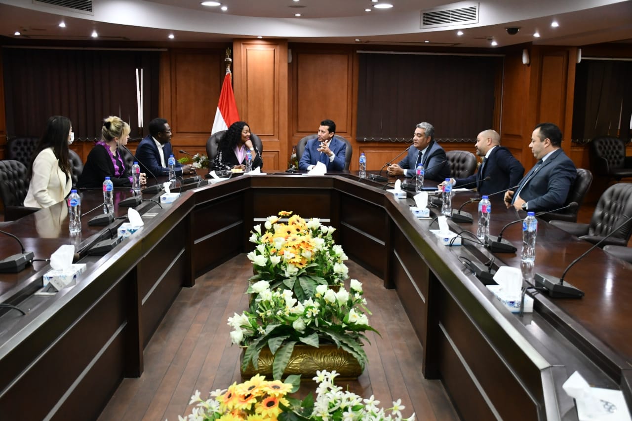 استقبل الدكتور أشرف صبحي وزير الشباب والرياضة، اليوم الأحد، فاطمة سامورا أمين الاتحاد الدولى لكرة القدم- فيفا، وفيرون أومبا الأمين العام للاتحاد الإفريقي لكرة القدم- كاف، والوفد المرافق لهما، بمقر الوزارة؛ للتباحث حول تكثيف أوجه التعاون المشترك.