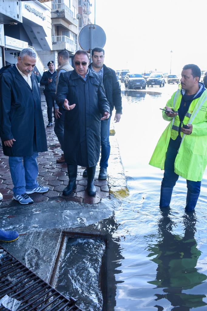 تابع اللواء محمد الشريف محافظ الإسكندرية، اليوم، عمليات تصريف تراكمات مياه الأمطار وتسيير حركة المرور، بطول الكورنيش؛ على خلفية الأمطار الغزيرة التي تتعرض لها المحافظة.