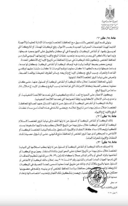 وتتولي المحافظة المختصة إعلان مالك المركبة أو أنقاض المركبة أو المسئول عنهـا، مـتـى كـان معلوما بمحضر الضبط وكافة الإجراءات التي تم اتخاذها وسبب الرفـع ومكـان الإيـداع خـلال 48 ساعة من تاريخ الرفع.
