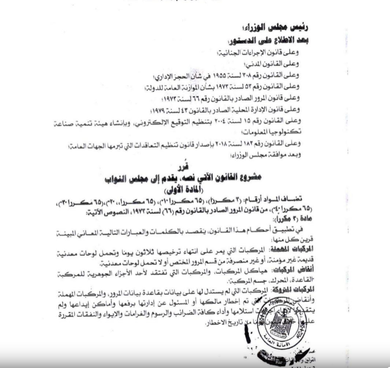 ننشر مشروع القانون المقدم للبرلمان حول السيارات المتهالكة المتروكة في الشوارع