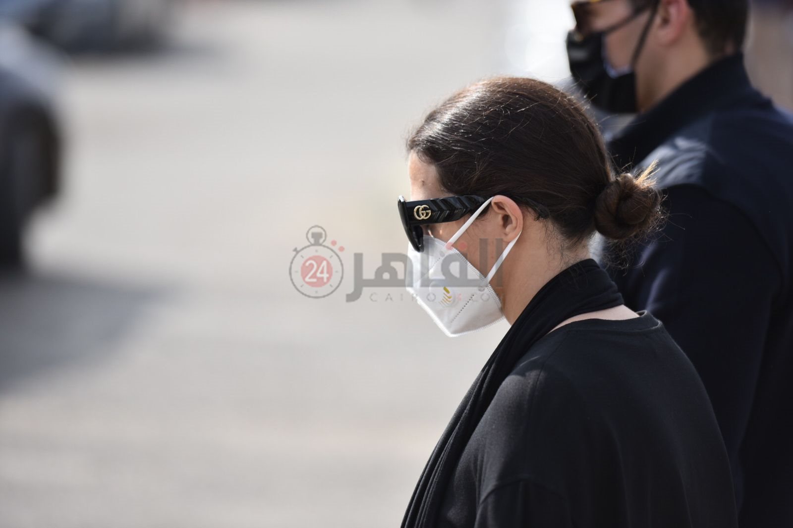 بوجه شاحب وملامح حزينة.. دنيا سمير غانم تصل مسجد الشرطة لتشييع جثمان سهير البابلي